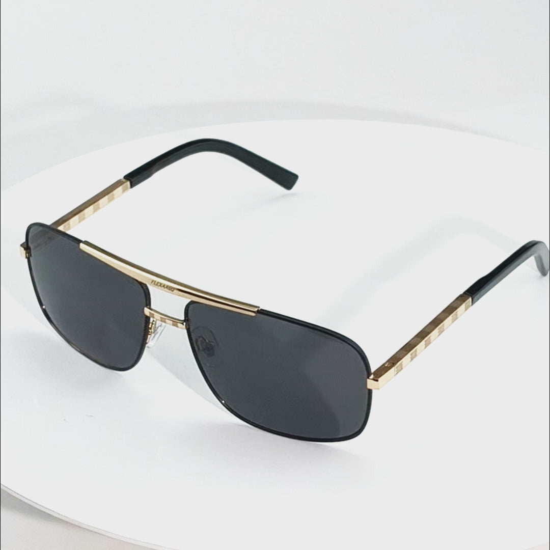 Twilight Dubai carries the attitude of the city itself. Precision in every line. Confidence in every angle. A sleek metal frame with warm gold touches that catch the light in a subtle way. The dark lenses balance the shine with depth and mystery. It is the kind of frame that looks right stepping out of a luxury car, walking into a rooftop lounge, or moving through an airport with calm authority.